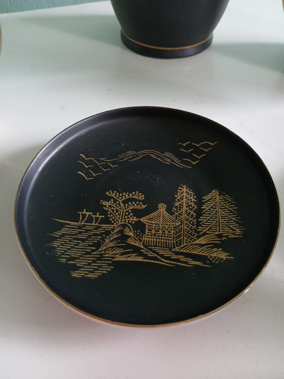 Complete Japanese (Andrea) Black & Gold Hand painted Tea set By Sadek 6 piece