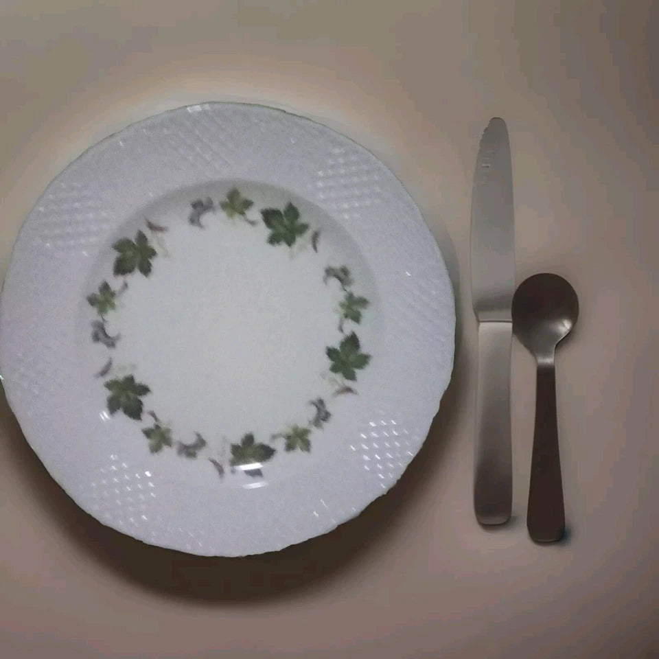 Experience elegance at your dining table with the Moselle Plate from Burleigh England. This exquisite piece features a wicker border and a delicate vine accent, making it a perfect addition to any collection.