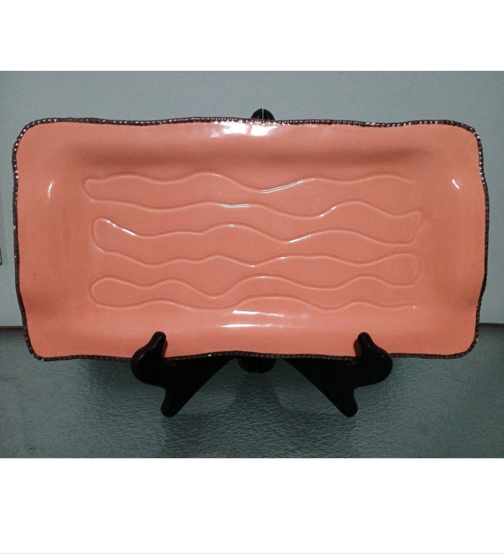 The Bella Casa by Ganz Sushi Platter combines elegance and functionality, perfect for any dining occasion. With its unique peach color and silver trim, this rectangular platter adds a touch of sophistication to your sushi presentations.