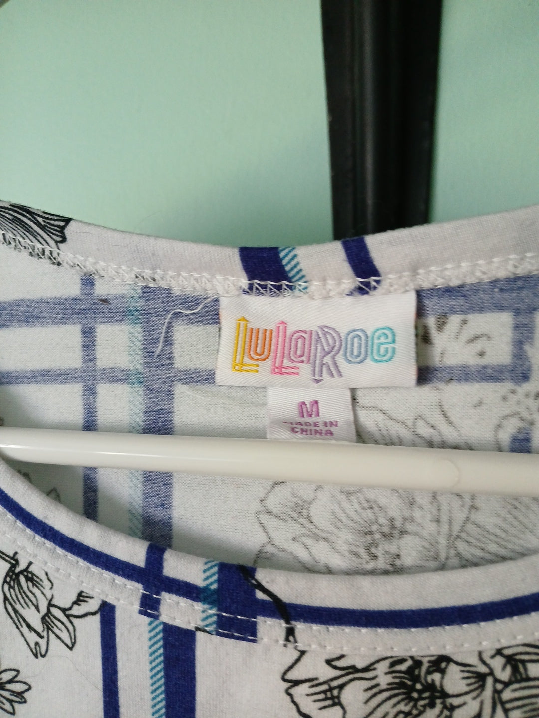 LULAROE dress with Pockets /White, Blue Squares, & Floral Sz M